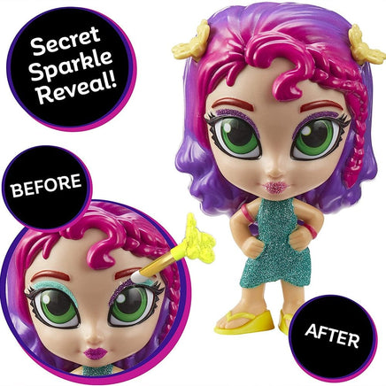 Your Shimmer n Sparkle InstaGlam doll has its own unique funky hair colour, stylish outfit and on-trend makeup colour pallet. Glam your doll! Your Shimmer n Sparkle InstaGlam doll includes a removeable sponge applicator and brush applicator which unlock a secret sparkle reveal. Use the brush applicator to simply brush the doll's eyelids and lips with water to reveal a super sparkly and glamourous makeup look on the doll itself!