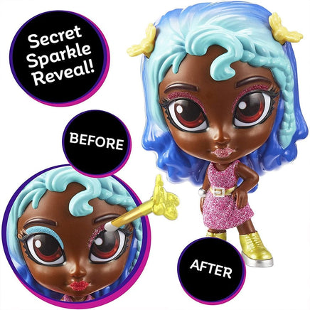 Your Shimmer n Sparkle InstaGlam doll has its own unique funky hair colour, stylish outfit and on-trend makeup colour pallet. Glam your doll! Your Shimmer n Sparkle InstaGlam doll includes a removeable sponge applicator and brush applicator which unlock a secret sparkle reveal. Use the brush applicator to simply brush the doll's eyelids and lips with water to reveal a super sparkly and glamourous makeup look on the doll itself!
