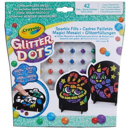Crayola Glitter Dots offer fun glitter play in a less messy way! - never messy, never difficult to manipulate or mix, no waste, clean up or dry time.