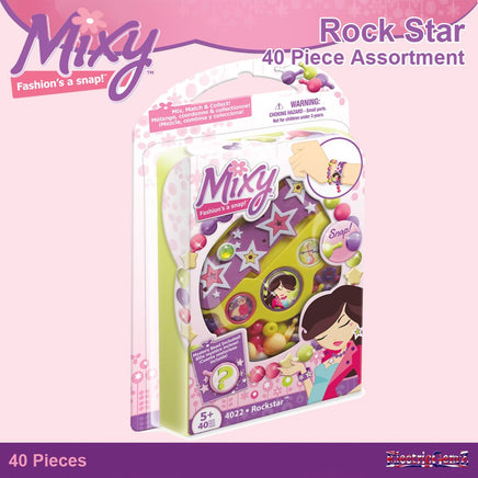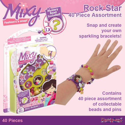 The Mixy Rock Star 40 Piece Assortment contains a selection of 40 different, rock star-related pieces, which all snap together - including a special Mystery Bead. Lots of other playsets and accessory packs are available too, making the Mixy system a creative interest that will last and last.