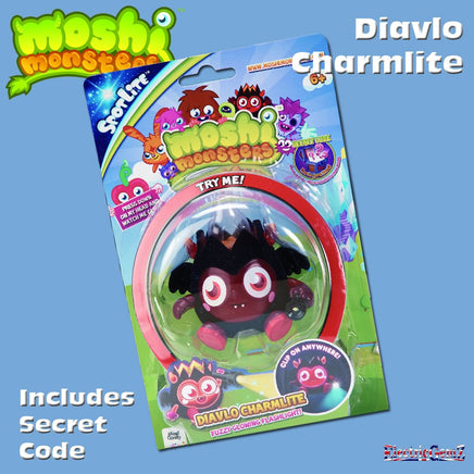 Suitable for ages 6+, Moshi Monsters Diavlo Charm Lite is approximately 8cm tall and clips on anywhere. Press down on his head and the fuzzy glowing flashlite comes to life holding a bright white LED torch. Clip him to your schoolbag or by the bed - or anywhere else you can think of!