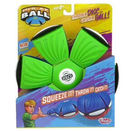 Throw a disc, catch a ball! Phlat Ball is a unique toy that transforms from a flying disc to a ball when thrown.