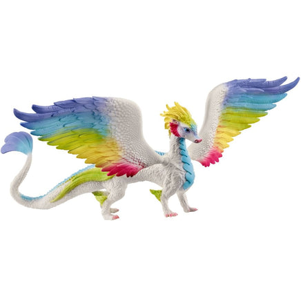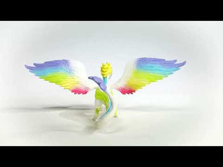 Suitable for ages 5+, when our Rainbow Dragon from the Schleich BAYALA world appears on the ceiling of your children's room, it is either on its way to you or the supplies in its cave have run out again - or both. Its colorful plumage reflects all the sun's rays with every single stroke of its wings. You can usually hear it too, either because of its loud call or because its tail has swept something away. The dragon sleeps best when its cave is full of fruit.