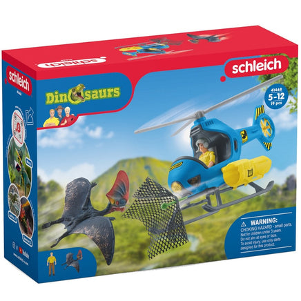 Suitable for ages 4+, it's perfect for following and catching dinosaurs from the air. Dino researcher Luis specially developed a tranquilizer cannon to be attached to the helicopter. He takes to the air to take a round flight in his helicopter. But be careful! A large Tapejara isn't at all pleased to find the helicopter has entered its territory, and immediately takes chase. Luis skilfully uses the control stick to make a fast 180 degree turn. The Tapejara tries to swerve but Luis activates the tranquilizer dart and net perfectly. The dinosaur is caught and can be easily carried with the winch on the helicopter.