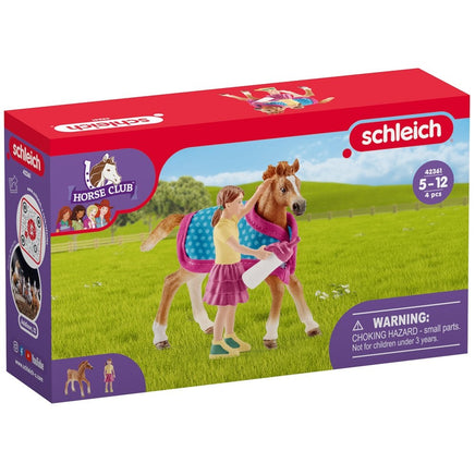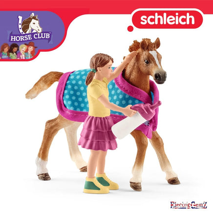 Schleich Horse Club 42361 English Thoroughbred Foal with Removable Blanket and Young Girl