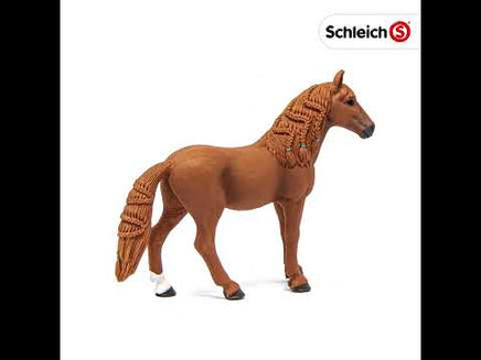 The German Riding Pony Mare from Schleich Horse Club has a beautiful chestnut coat. The braids in her mane are held together with cute, small ties.