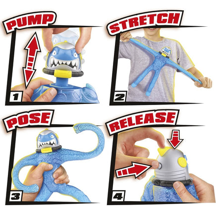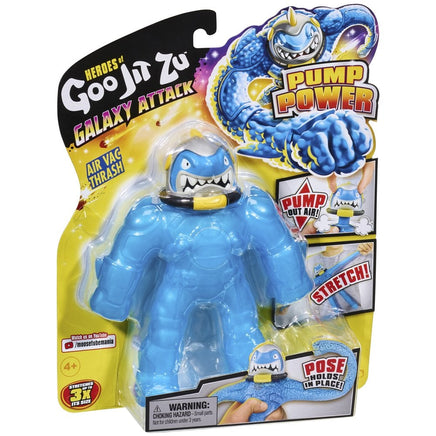 Pump your hero's head up and down to remove the air from their bodies to form a vacuum. Then stretch their limbs and bend their arms and legs. Wow! They can hold their stretchy pose! To release the vacuum just hold down their head while pressing the release button and return them back to their squishy crunchy state. Heroes of Goo Jit Zu Galaxy Attack are a Gooey way for kids to play with Action Heroes that make no mess. Squeeze, squish, stretch and collect both Pump Power Action Heroes - Air Vac Thrash and Air Vac Orbitox, both sold separately. It's time for a Vac Attack to see who will rule the Gooey Galaxy!