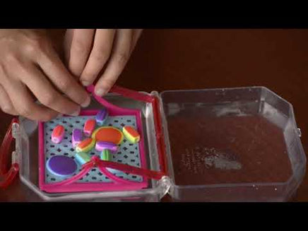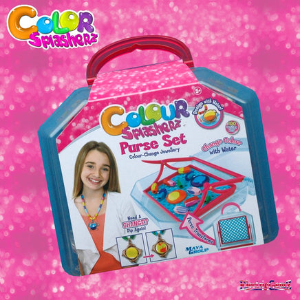 Suitable for ages 5+, the Colour Splasherz Purse Set is a mini set to complement the Design Studio (sold separately) contains everything you need to create beautiful, stylish jewellery that changes colour in water.