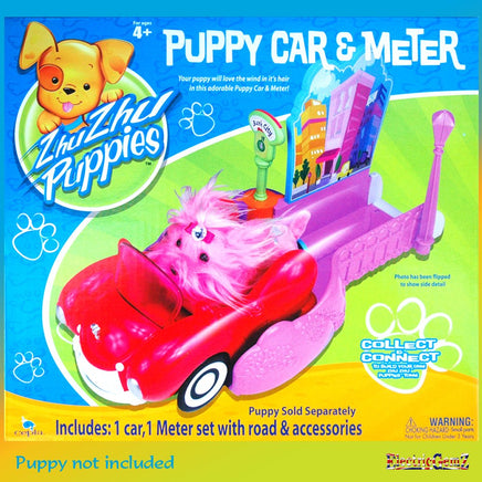 Suitable for ages 4+, the Zhu Zhu Pets Puppy Car and Meter includes a cute car, a parking meter set, road and accessories. Watch the meter change as your puppy zooms past!