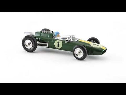 Based on Colin Chapman's streamlined design that first raced in 1962 and was famously driven by Jim Clark, this superb Corgi is painted in a classic "British racing green" livery, with a yellow racing stripe and that all important "No 1" decal. Strangely, the box illustration showed the car with a "No 4"!