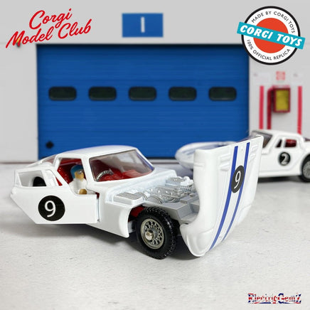 Of particular note for a Corgi Toy of this era, the inside of the doors were given trims that match the colour of the interior. All versions came with a driver figure, which Corgi have faithfully replicated. As per the original, they have issued this model with a number of different racing numbers. All boxes have the same barcode, so we have no idea which number you will receive.