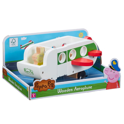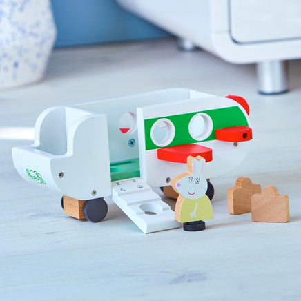 Get ready for take-off! Let your little one's imagination roam free with this adventurous Peppa Pig Wooden Aeroplane vehicle. Perfect for small hands as it is easy to grip and with smooth-rolling wheels, Peppa fans can push along the floor and fly high up into the sky. Easy open steps allow your Peppa Pig wooden figures board the plane and stow the 2 suitcases included. Also Includes 1 wooden Miss Rabbit figure with ‘drop n play' feet, so it can easily be dropped into any one of the 4 available slots, which promotes hand-eye coordination. Chunky and robust, this push along wooden vehicle inspires imaginative play, allowing storytelling skills to develop whilst having fun! Made from environmentally responsible FSC Wood and suitable for children aged 2 years and over. Peppa's World of Wood! Durable, Sustainable and Imaginative Play! For ages 2+.